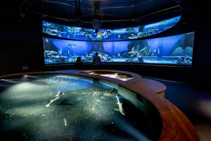 Le parcours permanent « L’Océan du Futur » complète cette approche. Déployé sur trois niveaux, il combine aquariums d’exception, projections grand format, dispositifs tactiles et tablettes interactives pour explorer les grands équilibres marins, la biodiversité abyssale ou encore le volcanisme sous-marin. L’aquarium abyssal, avec ses 10,70 mètres de profondeur et ses mille poissons polynésiens, en reste l’emblème visuel.